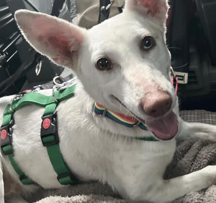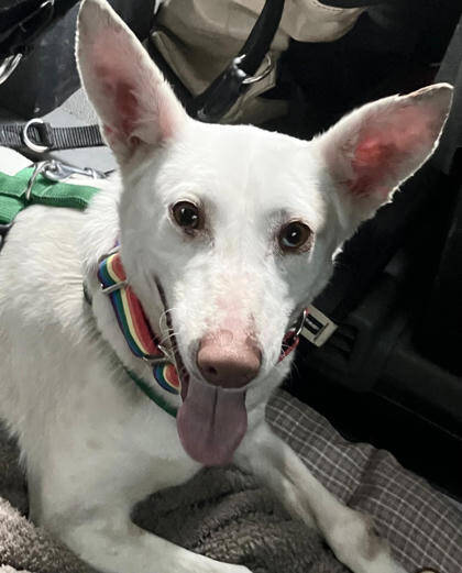 Bevor Aurea1 in den Shelter kam, lebte sie in einer Pflegestelle und zeigte sich dort als sehr angenehme Mitbewohnerin. Sie war brav und machte ganz deutlich, dass die Hündin Menschen sehr gerne hat und sich am liebsten den Bauch kraulen lässt. Sie sucht die Nähe zu Menschen und ist sehr entspannt in Gegenwart der Zweibeiner, auch Kinder hat sie gern. Momentan ist Aurea1 noch unsicher und benötigt jemand der ihr Sicherheit bieten kann. Ihr Futter und Napf teilt die Hündin nicht gern ansonsten ist Aurea1 aber mit ihren Artgenossen verträglich und könnte daher zu einem vorhandenen Ersthund oder in ein bestehendes Hunderudel vermittelt werden. Auch gegen eine Katze in ihrem neuen Zuhause hätte Aurea1 nichts einzuwenden. Im Auto fährt die Hündin gerne mit. An der Leine laufen und Treppensteigen konnte sie auch schon üben und alleine bleiben klappt bereits 90 Minuten lang. Aurea1 ist soweit stubenrein, solange sie regelmäßig rauskommt. Wir gehen davon aus, dass die junge Hündin das restliche Hunde-ABC erst noch lernen muss. Die Hündin ist taub, scheint damit aber gut zurecht zukommen und reagiert schon gut auf Handzeichen. Dennoch sollten Sie die Bedürfnisse und Besonderheiten bei der Haltung eines tauben Hundes beachten.